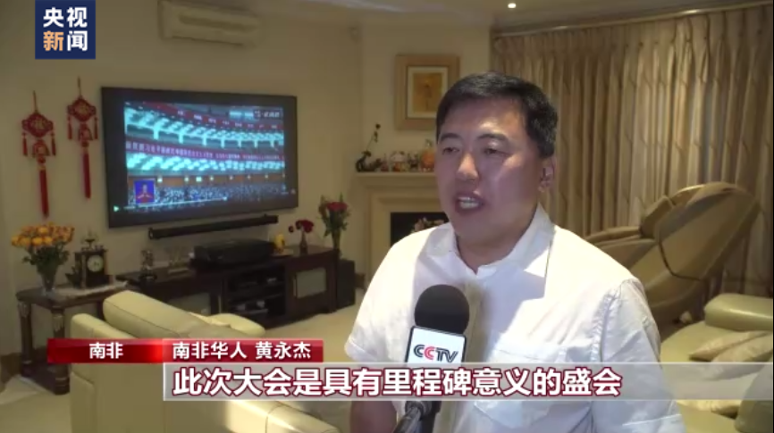 南非华人 黄永杰:此次大会是具有里程碑意义的盛会,我们身在海外的华人亲身感受到中国新时代十年的伟大变革。中国的经济实力和国际影响力不断增强,在中国共产党的领导下中国人民的生活水平也在不断地提高,也同时带动了世界上更多其他国家的发展,造福了当地人民。这一点,我们在海外奋斗的华人也深有体会。