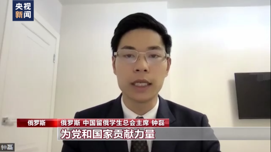 中国留俄学生总会主席 钟磊:同学们既为新时代党和国家事业取得的历史性伟大成就感到由衷自豪,更热切盼望早日学成归国,为党和国家贡献力量。